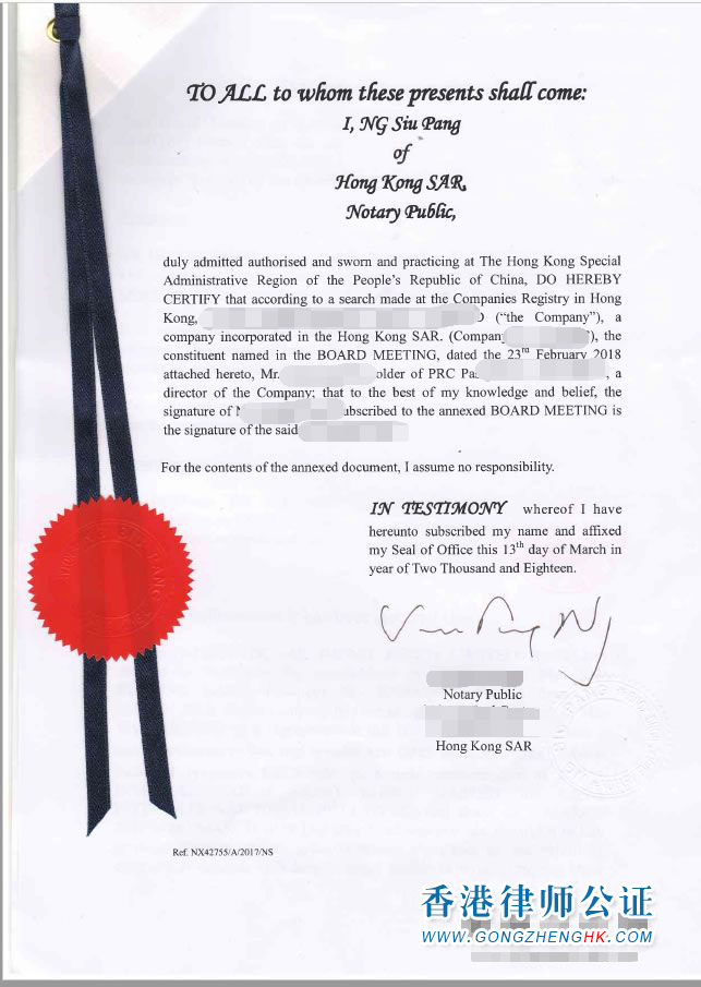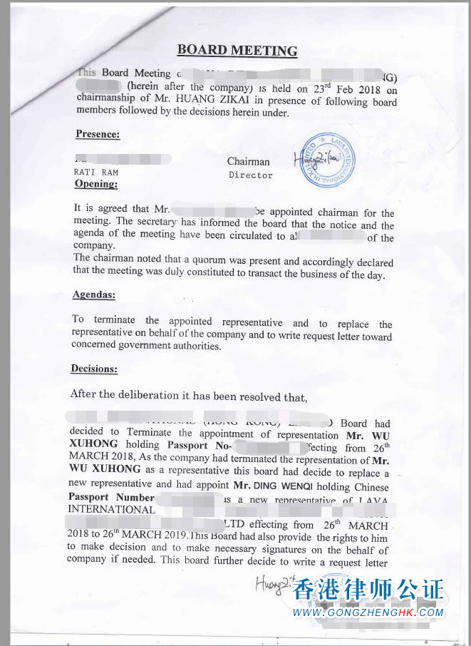 香港董事決議文件公證樣本