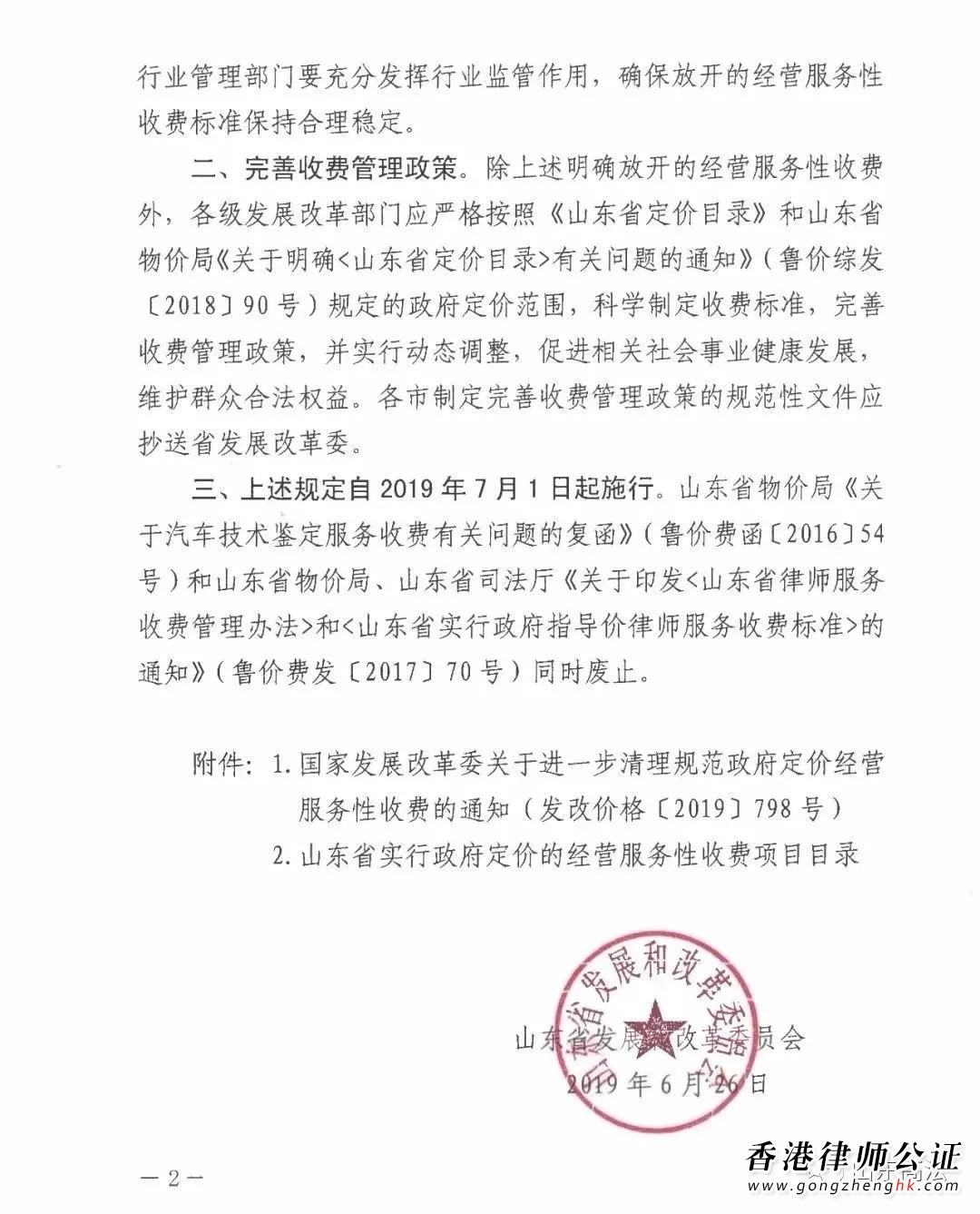 根據(jù)山東省發(fā)展和改革委員會于2019年6月26日下發(fā)的《山東省發(fā)展和改革委員會轉(zhuǎn)發(fā)<國家發(fā)展改革委關(guān)于進(jìn)一步清理規(guī)范政府定價經(jīng)營服務(wù)性收費(fèi)的通知>的通知》(魯發(fā)改成本〔2019〕613號),山東省發(fā)展和改革委員會決定自2019年7月1日起放開律師服務(wù)費(fèi)、基層法律服務(wù)費(fèi)、公證服務(wù)費(fèi)、司法鑒定服務(wù)費(fèi)等多個項目的收費(fèi),同時廢止山東省物價局、山東省司法廳《關(guān)于印發(fā)<山東省律師服務(wù)收費(fèi)管理辦法>和<山東省實(shí)行政府指導(dǎo)價律師服務(wù)收費(fèi)標(biāo)準(zhǔn)>的通知》(魯價費(fèi)發(fā)〔2017〕70號)。