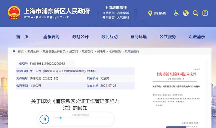 關(guān)于印發(fā)《浦東新區(qū)公證工作管理實(shí)施辦法》的通知